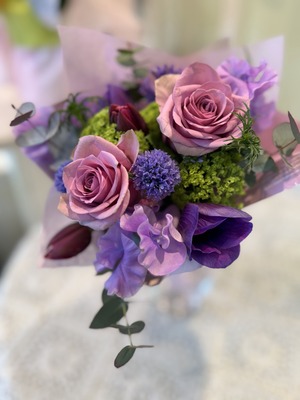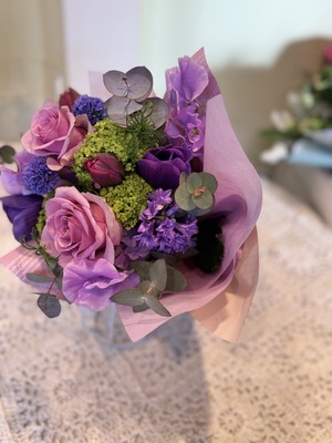 【3/14 ホワイトデー】季節のお花のブーケ(パープル)